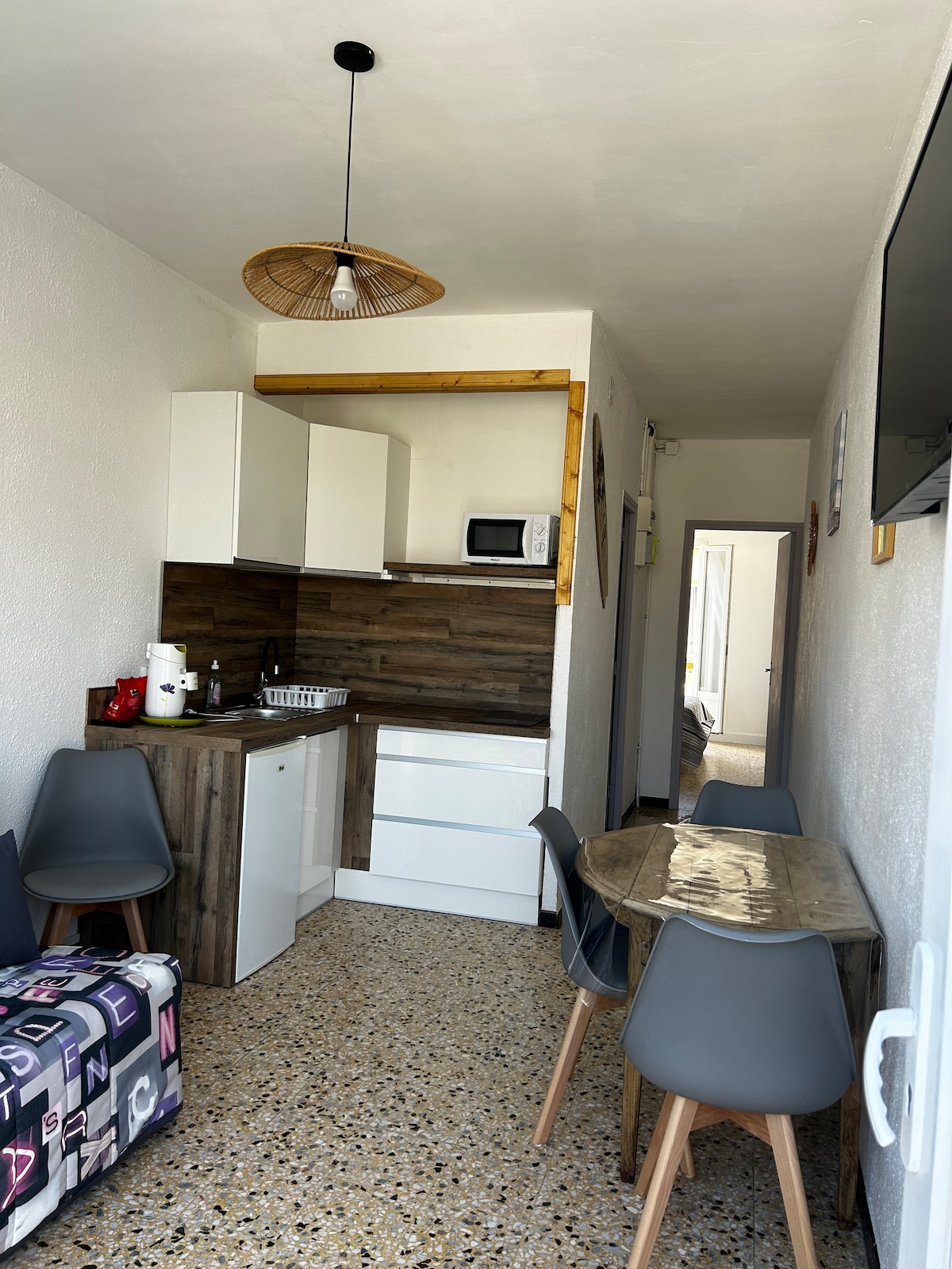 Notre appartement T2 climatisé, proche de la mer, vous offre un cadre idyllique pour des vacances inoubliables. Situé au 1er et dernier étage d'une résidence calme, il est parfait pour un couple ou une petite famille. Avec sa kitchenette, son salon avec canapé-lit, sa salle de bain et sa chambre avec balcon. vous vous sentirez comme chez vous. Profitez également des nombreux commerces, restaurants et animations à proximité. Un lit-parapluie est disponible. PS : Draps et serviettes non fournis.