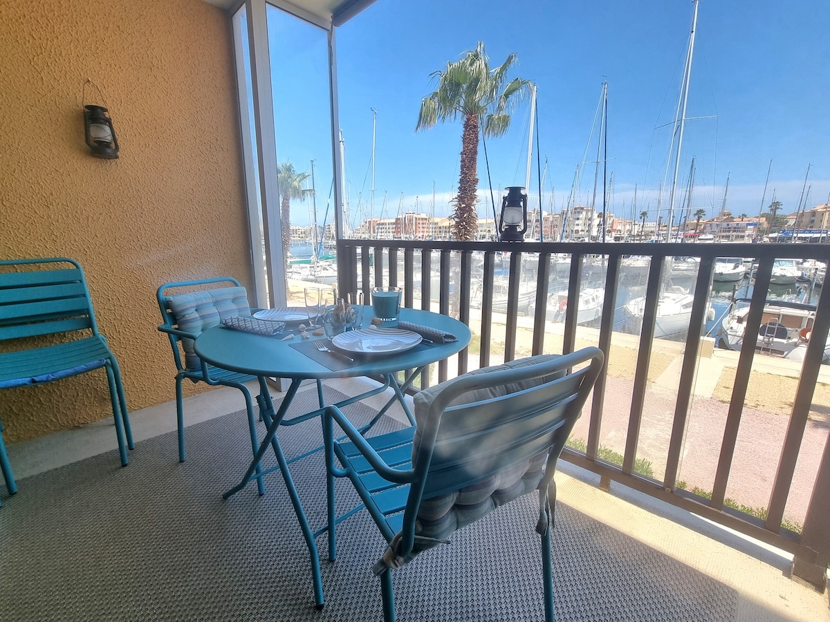 Studio avec terrasse vue Marina - piscine