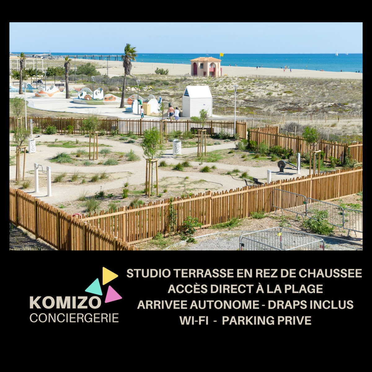 Directement sur la plage, ce studio va vous ravir!!! Vous vous régalerez du lever de soleil grandiose sur la terrasse face à la mer. Lumineux et doux, il est pensé pour le repos et la détente. A 2 pas de la plage, au calme et sans vis-à-vis. Entièrement rénové. Un vrai lit 160/200,WIFI le PARADIS! Nous accueillons gratuitement avec plaisir les enfants jusqu'à 4 ans. Nous mettons a votre disposition un lit cage. Nous vous proposons la location de draps, serviettes, serviettes de plage, ménage.
