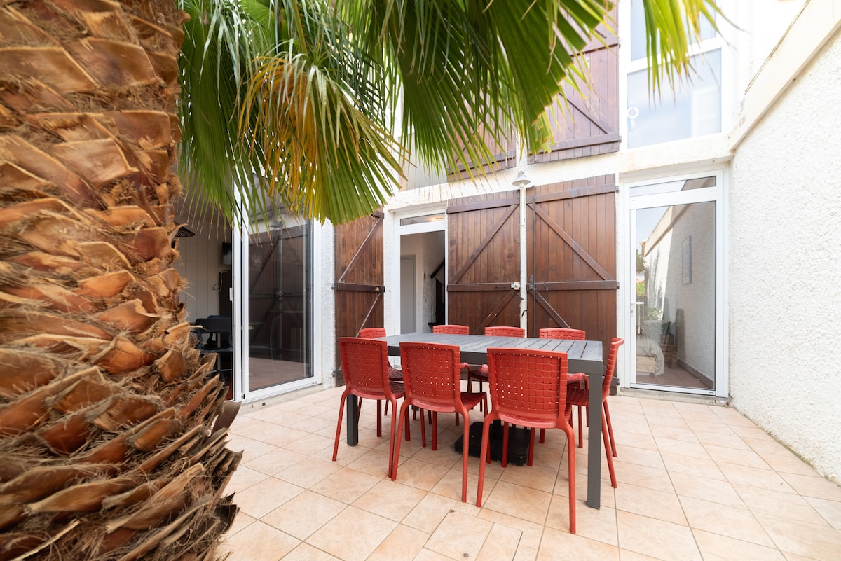 A 50m de la Plage, La Casa Cactus est une jolie petite maison conviviale, située dans une résidence calme et disposant d’un parking privé. Idéale pour des vacances en famille ou entre amis, elle dispose de trois chambres : Deux chambres avec lit double (140x 200) Une chambre avec 2 lits superposés idéales pour 4 enfants/ados Vous disposerez d’un salon cosy ouvert sur une cuisine tout équipée. Le petit plus : un magnifique petit jardin où vous pourrez profiter de vos repas sous le palmier