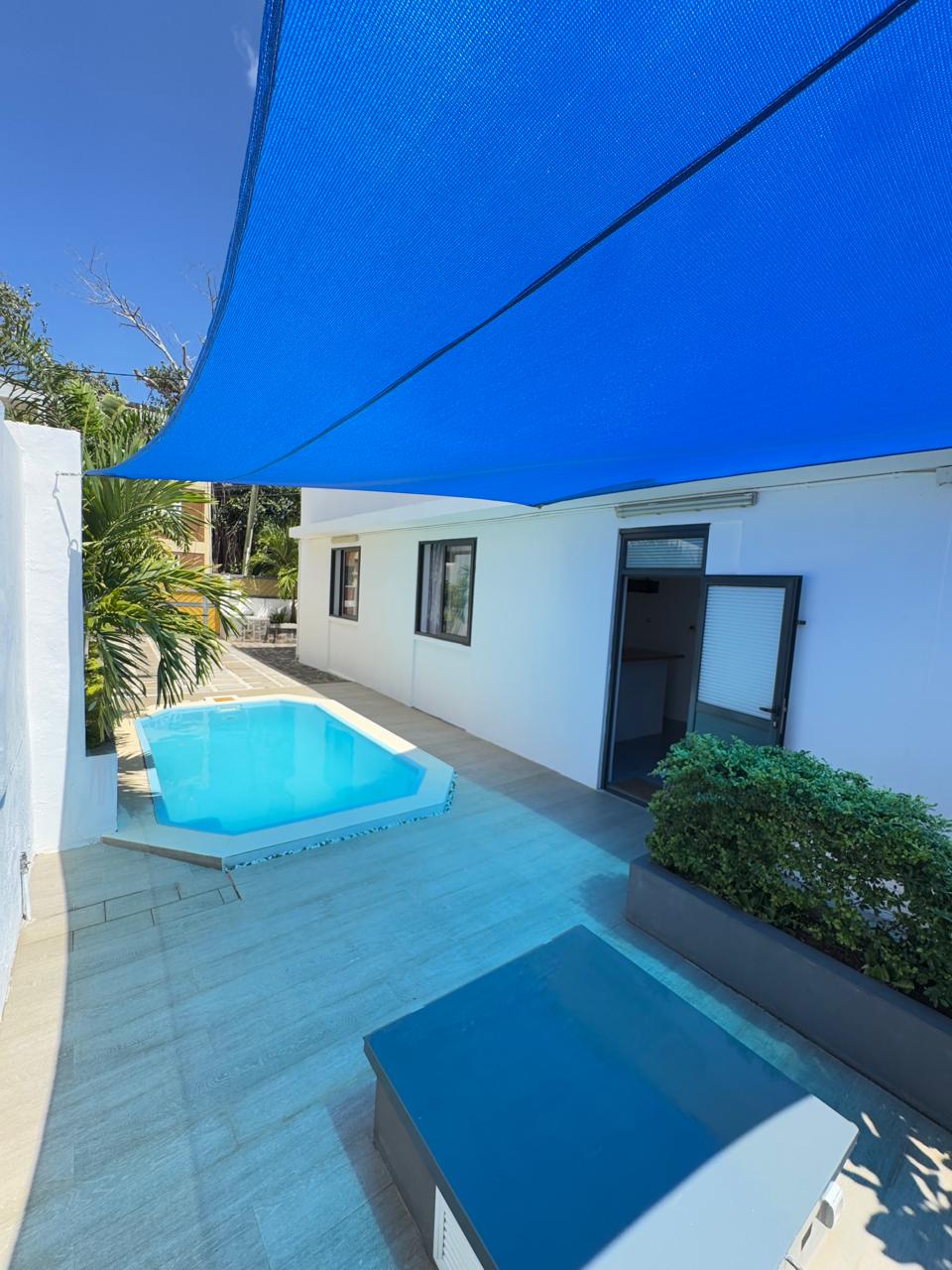 Modern Beach style duplex in Bain Boeuf, only a few minutes walk from the beautiful beach (400m) & dive school, in a very peaceful neighbourhood. Large open living areas with integrated kitchen, enclosed courtyard with the feel of being open, private pool and outdoor shower to freshen up. Ocean life at its best-with a modern flair of comfort.