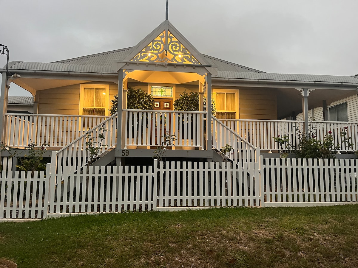 Our home is a unique 100 year old historic timber residence which has been renovated and restored with 2.5 modern bathrooms and kitchen. We have 3 queen size bedrooms, 2 single beds and a cot. A sofa bed is available. There are 2 separate living areas and a covered courtyard. A short 7 minute walk to town, which offers many cafes and restaurants. Koolongbung nature reserve and walking tracks are at our doorstep, and the famous Koala hospital is close by. Small groups and families welcome