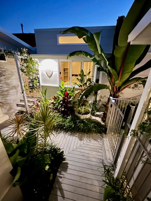 This stylish spacious terrace style townhouse has own private entrance consists of 2 bedrooms both with own bathrooms and main bedroom has balcony and walkin robe aircon internAl access from garage and tropical style paved courtyard with dining table and BBQ Short walk 5 minutes to Rocky and town beach one way or Flynns the opposite direction 3 minute walk to Coastal Walk Please keep in mind that it is a terrace with different levels so maybe not be suitable for toddlers