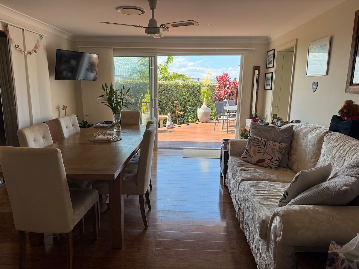 Amazing views of the Pacific Ocean from guest deck through to lounge/ kitchen Direct beach access for surfing,swimming,fishing,bushwalking,cycling trails closeby Relax to the sounds of the ocean from guests downstairs secure and completely private suite with air con ,2 queen bedrooms,kitchen prep area has jug,toaster,3 in 1 microwave airfryer,convection oven,bar fridge etc. Continental breakfast provided . BBQ long stay Large lounge room,bathroom seperate toilet laundry Walk to many Restaurants