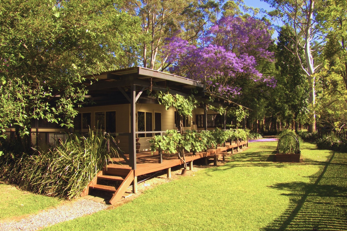 Kiwarrak Country Retreat provides stylish, self-contained cottage accommodation near Old Bar Beach on the stunning Barrington Coast, NSW. Set on 10 picturesque acres, the Retreat is surrounded by beautifully established gardens and lawns with a backdrop of tall Australian gums, tucked between Kiwarrak State Forest and Khappinghat National Park. This idyllic bushland setting is conveniently less than 10 minutes from gorgeous beaches, great cafes, and access to the double delta Manning River.