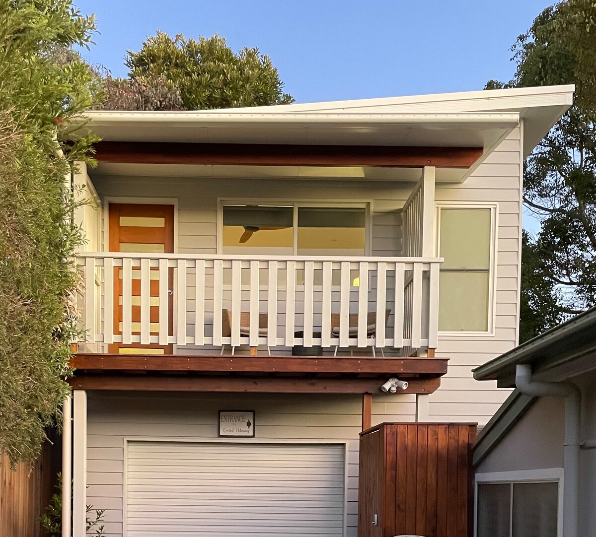Cute couples retreat, dog friendly, for an overnight stopover or a minimalist staycation. The self-contained, private guesthouse features a bright lounge area (with kitchenette), opening up to a timber deck for relaxing afternoons watching the sunset; a fully functional bathroom with washing machine and dryer; and a bedroom bathed in morning sunlight with an enclosed courtyard for doggo. 🐾 Please read policies and rules before booking.