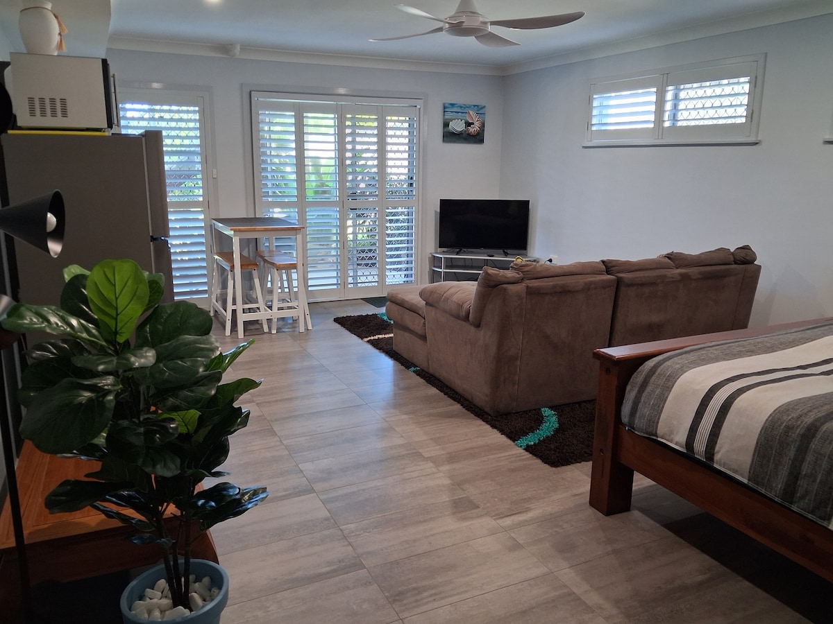 This well-located and homely studio is located directly across from Shelly beach; a quiet and long stretch of the pacific ocean, and only 5 mins from popular Flynns and Lighthouse beach. This perfect location is also only a 5 min drive from the town centre where you can immerse yourself in the abundance of great restaurants and cafes on offer. The apartment would best suit a couple or friends looking to relax and unwind in beautiful Port Macquarie. Not really set up for infants or kids.