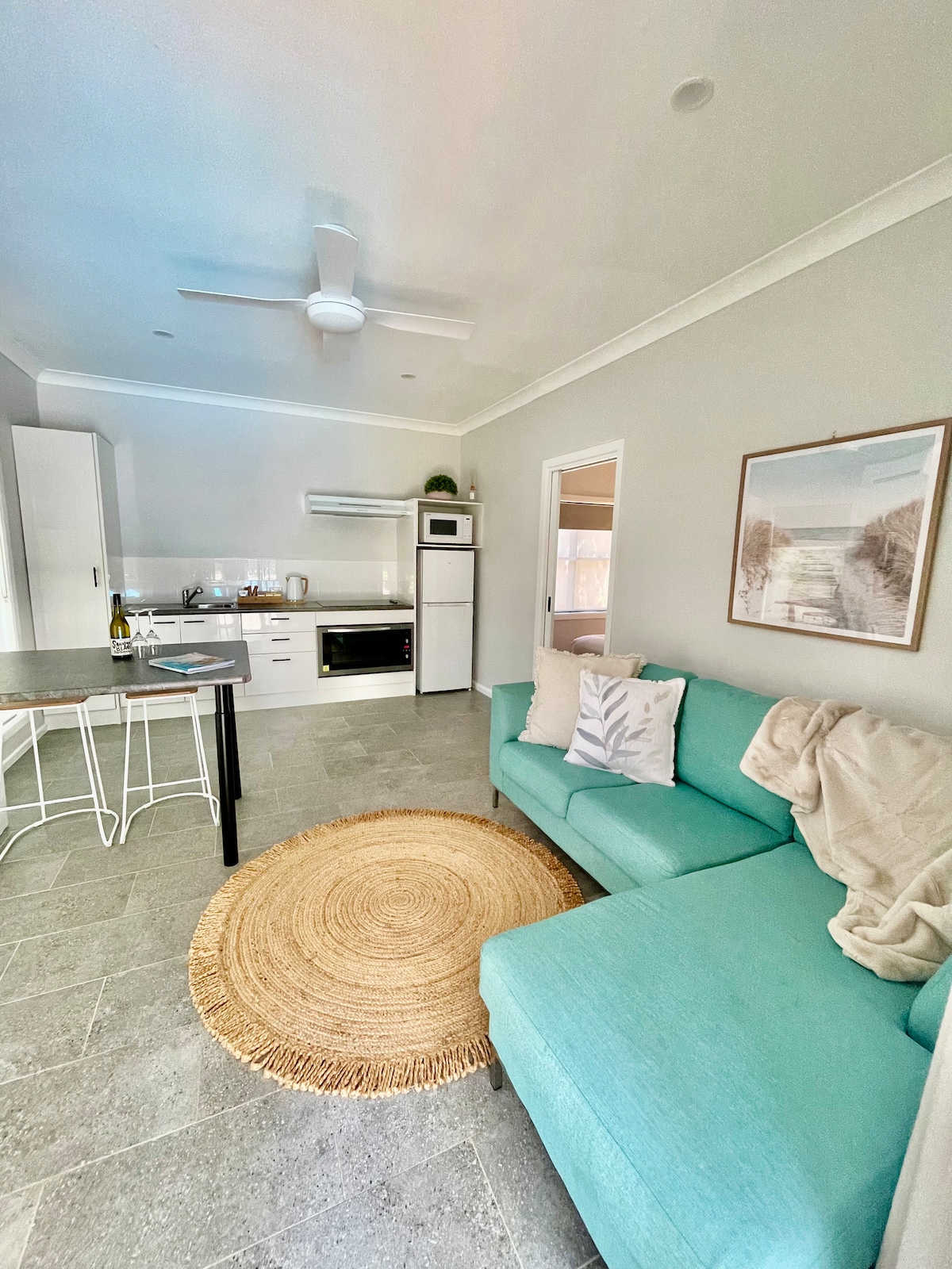 Coastal, self-contained guesthouse, an easy five minute walk until your feet reach the soft sands of Middle Rock beach. The perfect base for exploring the NSW mid north coast. Unwind with an elevated guest experience, in this thoughtfully designed space, with a relaxed, fresh, organic style. Quality furnishings and luxury guest amenities are all part of the experience. Suitable for a maximum of two guests only.