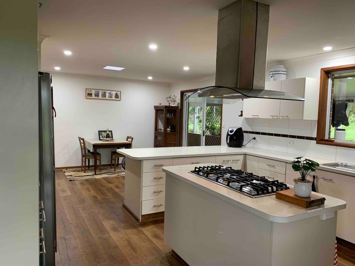 Our home is a unique 100 year old historic timber residence which has been renovated and restored with 2.5 modern bathrooms and kitchen. We have 3 queen size bedrooms, 2 single beds and a cot. A sofa bed is available. There are 2 separate living areas and a covered courtyard. A short 7 minute walk to town, which offers many cafes and restaurants. Koolongbung nature reserve and walking tracks are at our doorstep, and the famous Koala hospital is close by. Small groups and families welcome