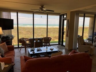 ★Beachfront complex with Amazing Ocean N Bay Views! ★Fast Wifi, keyless entry cable TV Netflix ★5 Star cleaning disinfecting sanitation! ★Washer N Dryer in unit ★Plenty of shops/restaurants walking distance. ★Heated Pool, Hot Tub, Sundeck ★Beach chairs, beach towels, body boards and beach toys provided FREE ★Watch SpaceX launch and firework from your private balcony ★Plenty of lounges on balcony ★Fully equipped kitchen w/everything you'll need. ★Video arcade board games ★Steps from the beach!