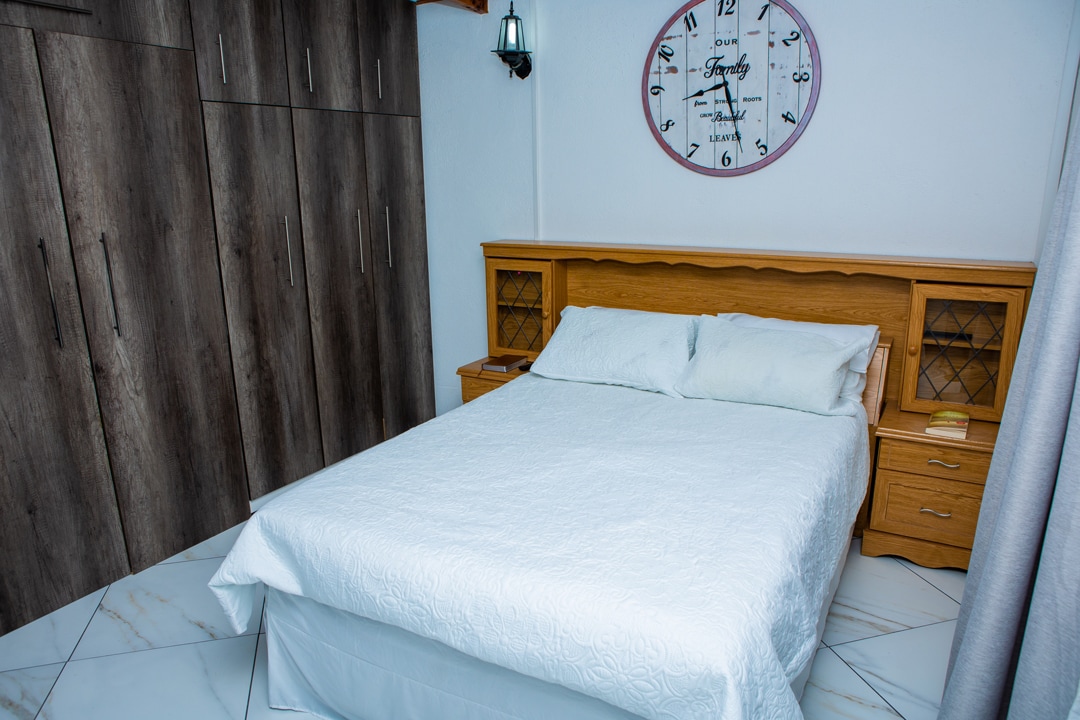 NO PETS. NO PARTIES, LOUD MUSIC, ALCOHOL ABUSE OR UNPAID GUESTS. This unit consists of 2 rooms that share a bathroom and kitchen. Each room has 1x double bed and 1x single bed. The spacious bathroom has a lovely corner bath and shower. Linen and towels included. Fully equipped kitchen with fridge/freezer, 2-plate induction cooker, microwave, kettle, etc. TV - DStv Easyview. Braai facilities and free Wi-Fi included. Safe parking. Daily service available on request (extra fee).