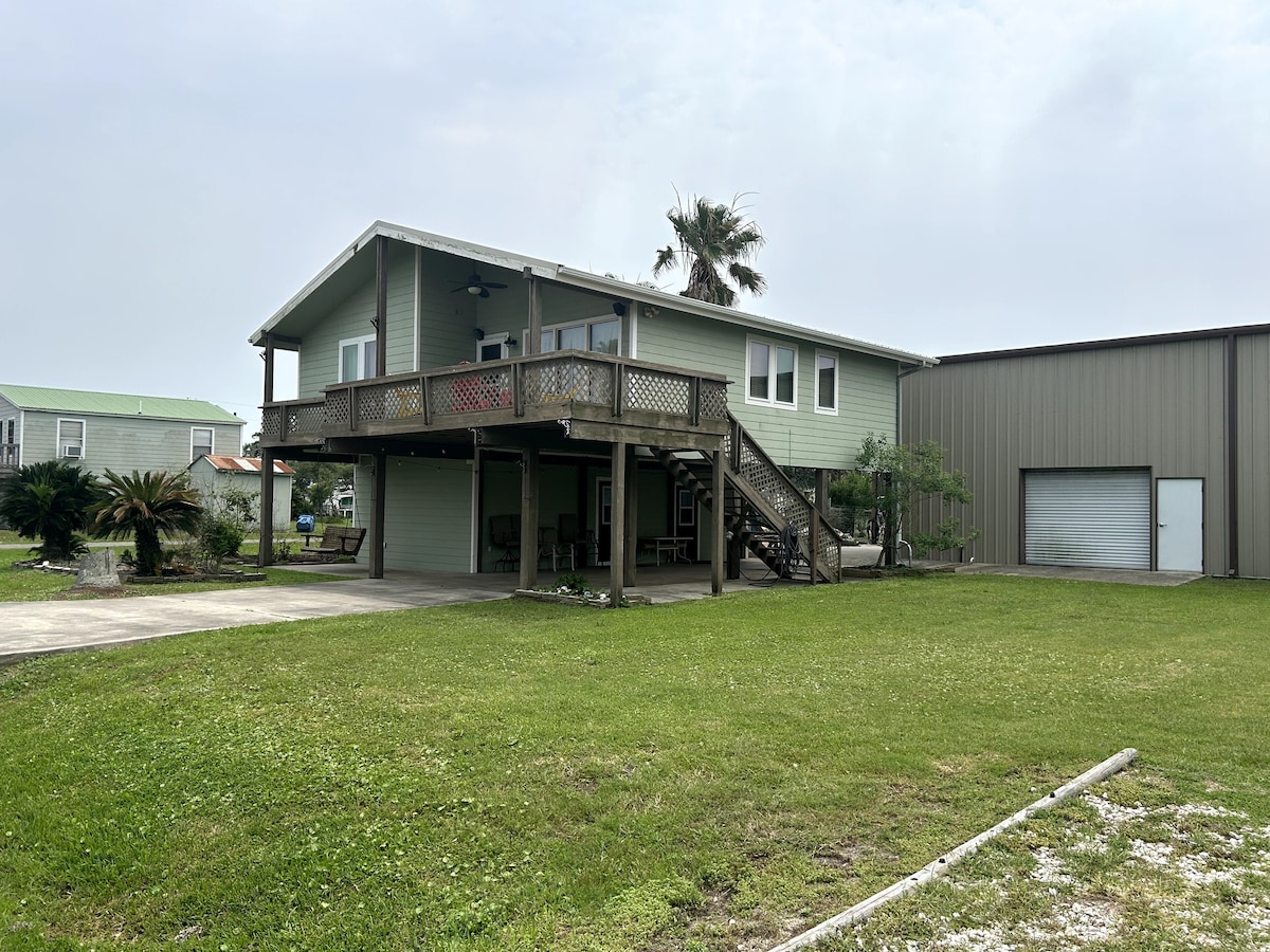 Close to King Fisher Beach on Matagorda Bay and near boat ramps to launch your boat. Pet friendly with doggie door and fenced yard. Swimming pool with deck and outside bathroom. Fish and duck cleaning area. You can enjoy the ocean breeze and view of the ICW from the house deck or the breezy sitting area below. Free extra parking, offshore boats no problem, and/or RV 50 amp and water hook up for additional $35 with house rental