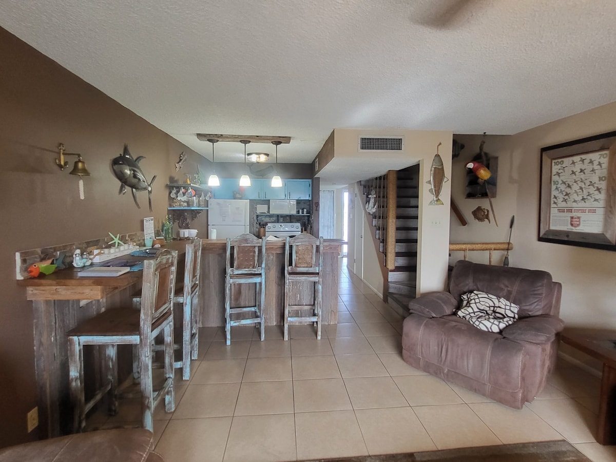 BRING YOUR BOAT, WHOLE FAMILY, AND PETS! This tastefully furnished Port O' Connor retreat is perfect for fisherman and families alike! It's conveniently located 4 blocks from Froggie's Boat Ramp/Bait Store & 5D Steakhouse. Our setup offers a safe gated entry, large garage area for COVERED BOAT PARKING, and plenty of room to entertain. Enjoy Ping Pong, Cornhole, giant jenga or the gas grill! One bedroom and bathroom is upstairs and separate, makes well for a bit of privacy. Come check out P.O.C!