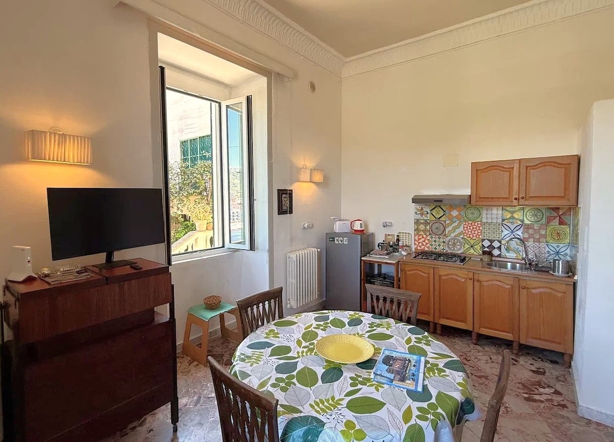 Agropoli, the gateway to Cilento, independent entrance apartment, fully equipped kitchen, 60 meters from the sea, villa sea view in a sought-after area, 300 meters from the historical center, via Armando Diaz n. 63, 1 double bedroom, living room with kitchen and double sofa bed, air conditioner, bathroom, washing machine, TV, WiFi 317 Mbps. Nearby are 2 beaches (60 or 150 meters), all shops (300m), and the ancient village with the castle, the center of cultural and artistic activities (400m)