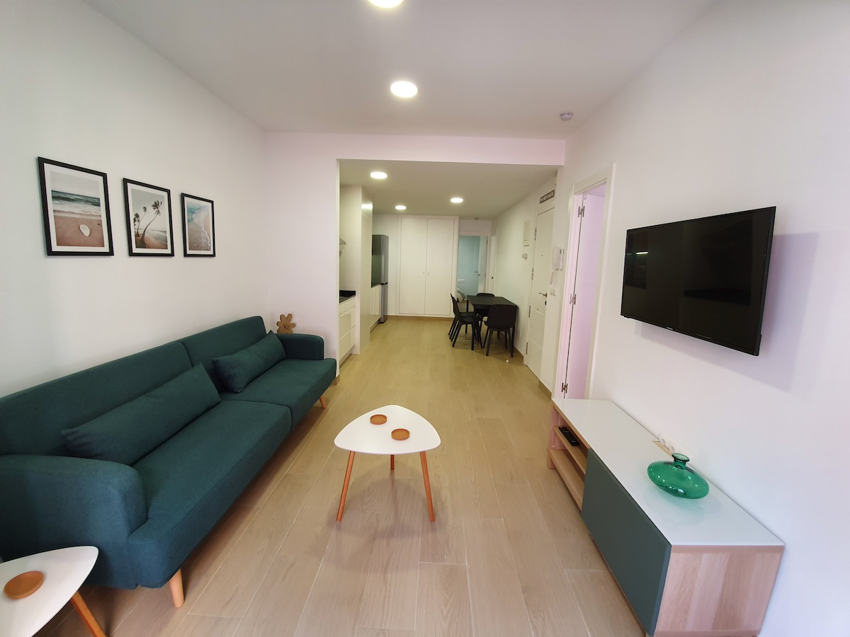 SEA BLUE 2021 Encantador apartamento, situado en una zona privilegiada, en pleno centro de Alicante, a 10 min. del Puerto de Alicante y 15 min. de la Playa del Postiguet. Cuenta con una decoración muy cuidada y de elegancia sutil, utilizando materiales naturales como la madera, destaca su Gran Ventanal frente al mar, permitiendo trasladarte a la tranquilidad y serenidad del mar. Dotado de una cama maxi, Tv 47", Torre sonido, baño completo, pequeña cocina totalmente equipada y amplio armario.