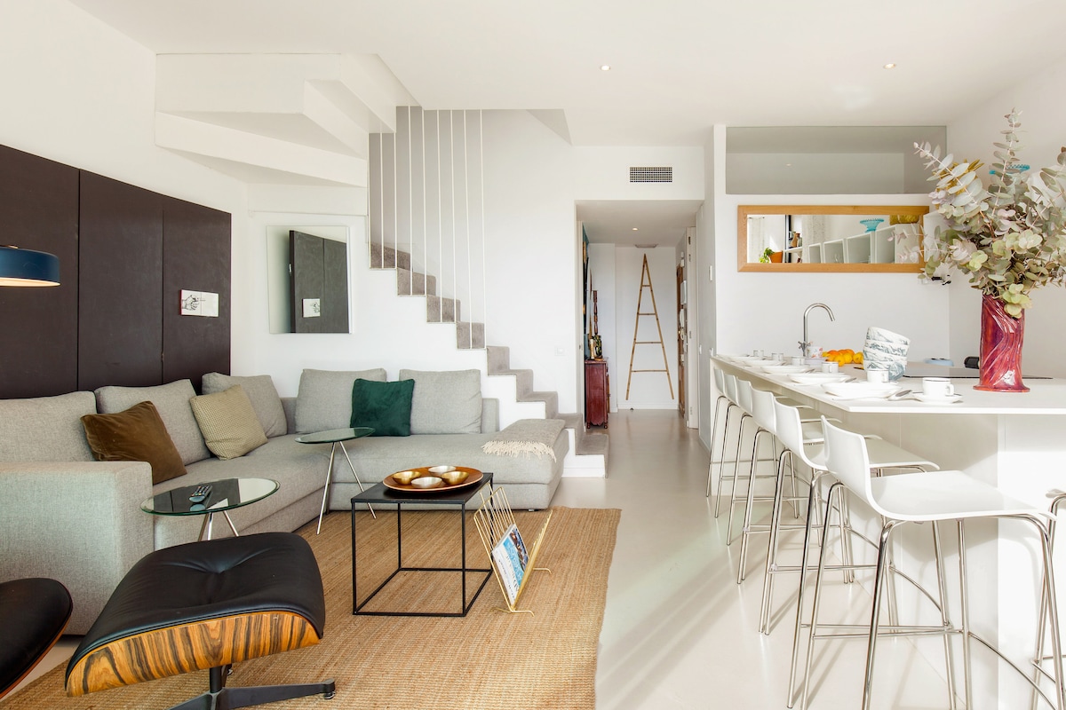 Gather round the gallery dining table to enjoy, not just a meal prepared in the gourmet kitchen, but fantastic multi-sided views of typical Barcelonan courtyards and gardens. Above the extra-large sofa, note the fine paintings spanning varied styles. The apartment has 2 bathrooms and three bedrooms. One bedroom with double bed and two bedrooms with two single beds. As well the apartment has a little closet room. You will have access to the entire apartment with private balcony.