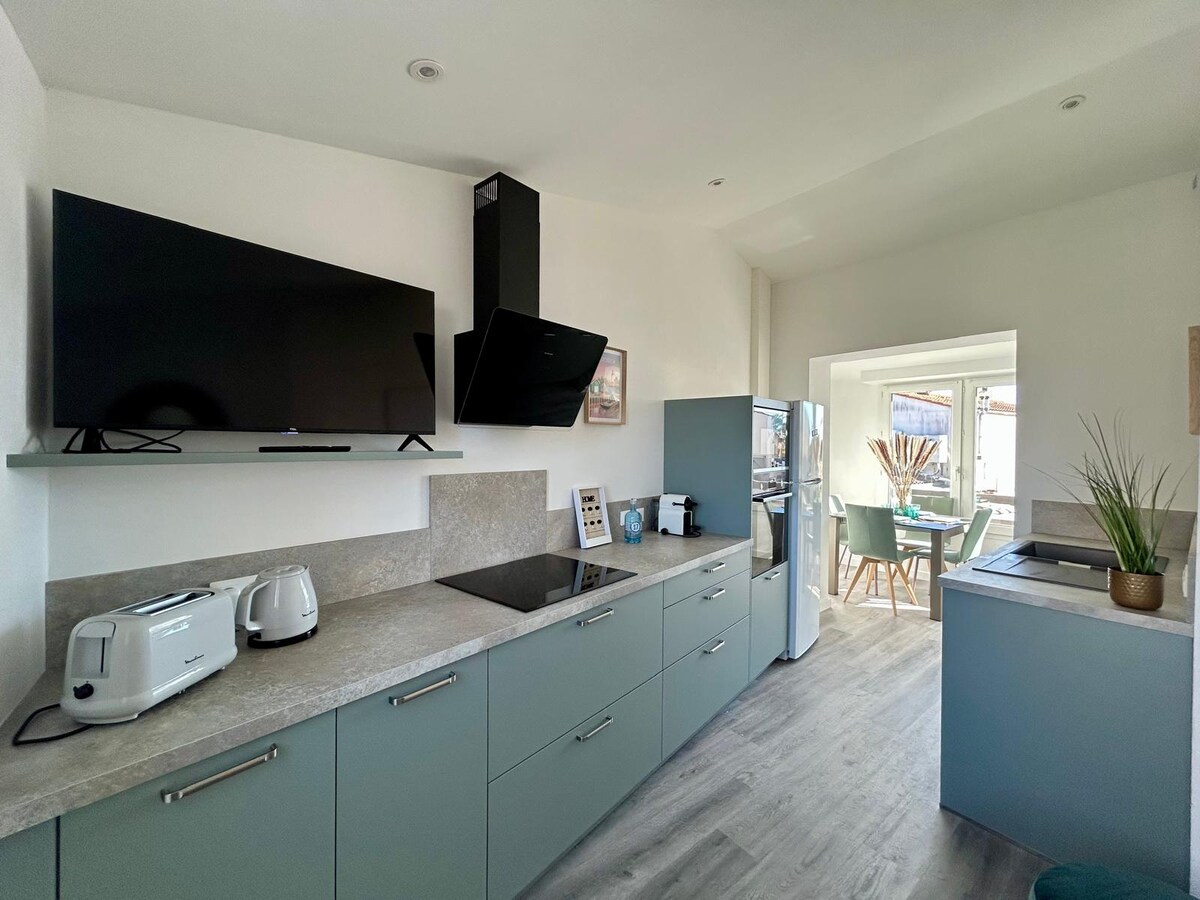 Lumineuse, la maison sera parfaite pour votre escapade en famille ou entre amis. La cour à l'arrière de la maison vous permettra de profiter du soleil pour une sieste, un apéritif ou un barbecue. Posez la voiture, accédez aux commerces, à la plage, au port de pêche à pied. Les pistes cyclables vous permettront de découvrir les marais entre vignes et forêts. Le marché de Victorine vous alimentera de poissons frais, le marché aux légumes et petits commerces complèteront vos menus.