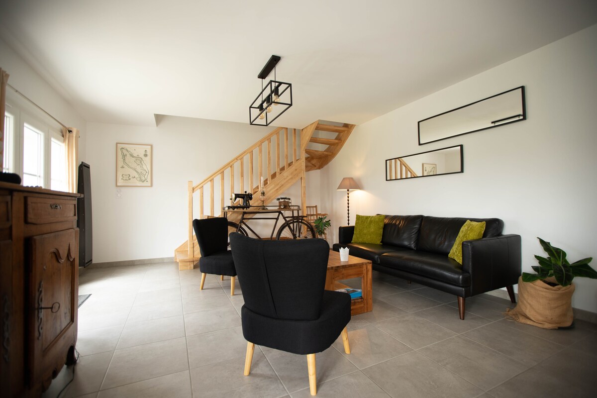 Idéalement située au centre de l ile , à st Pierre, dans un quartier calme, La maison est à 800 mètres du centre ville et de ses commerces ,cinéma,restaurants ,ouverts toute l année . Vous pourrez garer vos véhicules dans le jardin avec un portail fermant à clé A l arrière de la maison , un jardin clos avec grande terrasse Par les pistes cyclables et les routes de marais proches du logement , vous pourrez vous rendre aux plages à vélo (4 km)les plus proches.