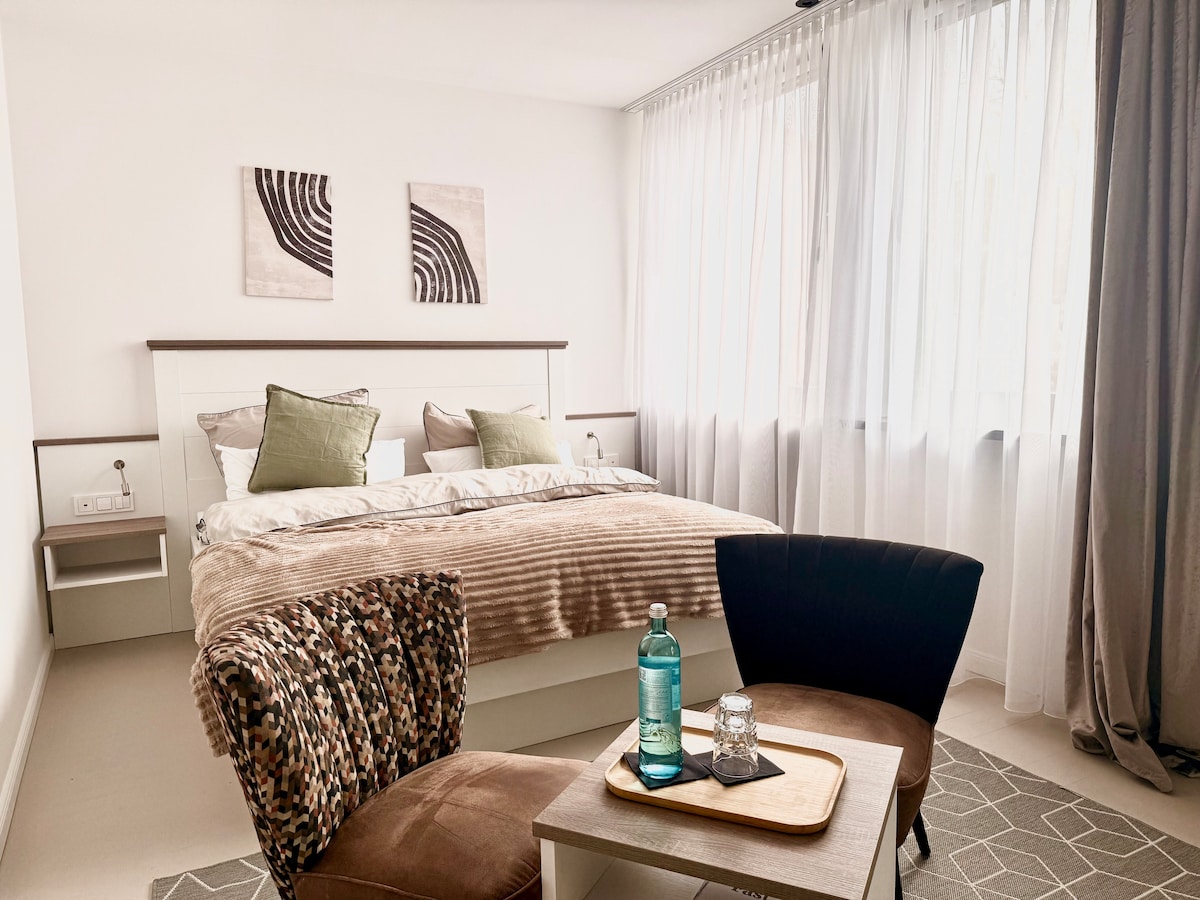 Unsere Unterkunft verbindet modernes Design mit durchdachter Ausstattung und einer ruhigen, angenehmen Atmosphäre. Die hellen Studios vereinen Wohn-, Schlaf- und Arbeitsbereich in einem offenen Raumkonzept und eignen sich ideal für Geschäftsreisende, Städtereisende und längere Aufenthalte. Jede Einheit verfügt über eine voll ausgestattete Küchenzeile, ein modernes Bad und einen komfortablen Arbeitsplatz. Self Check-in ermöglicht flexible Anreise. Zimmerzuweisung bei Ankunft.