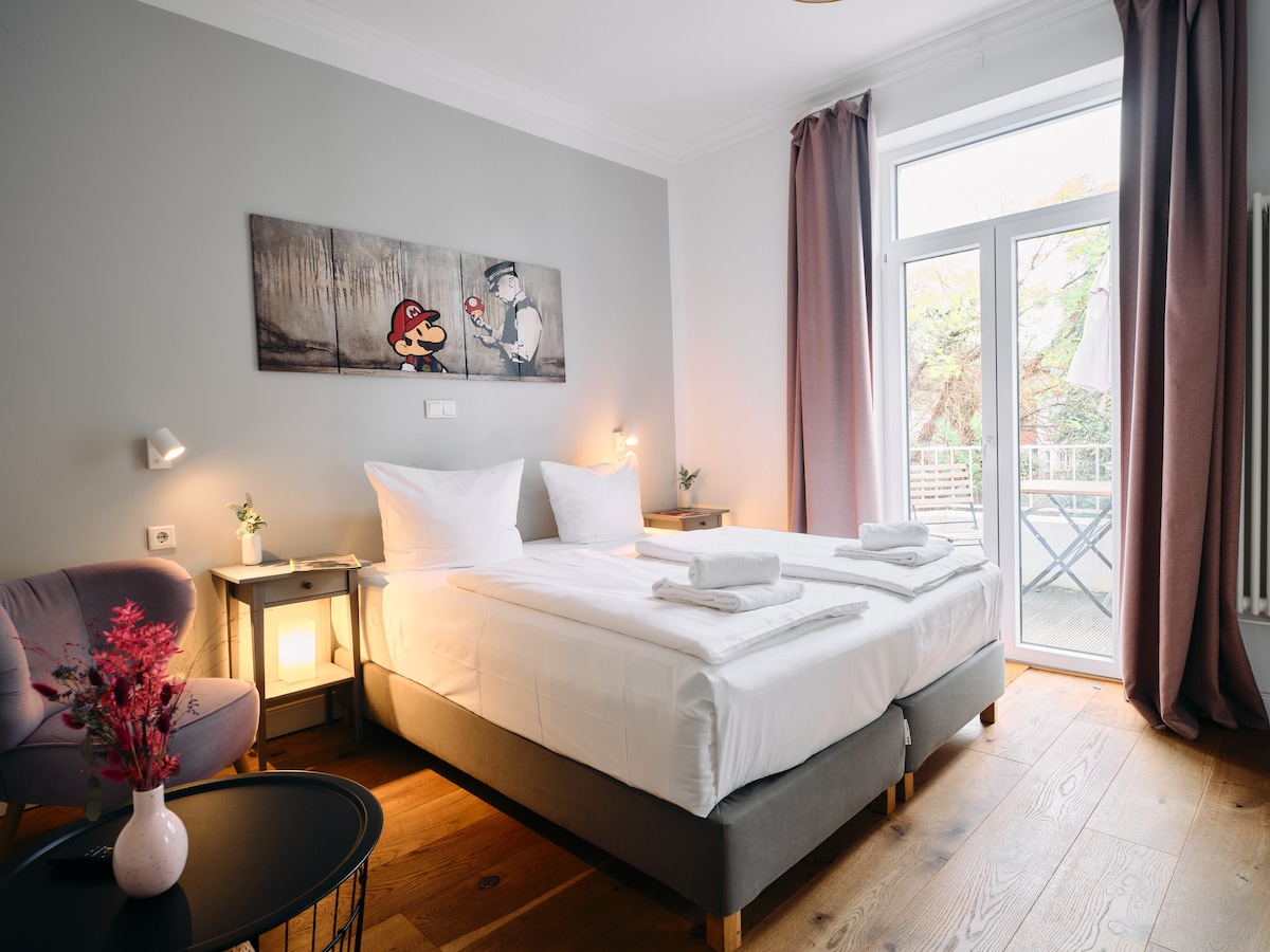 Beautiful sunny flat in a quiet side street on the edge of the Schanzenviertel district. Stay in a merchant's villa built in 1885 and renovated in 2020 on a quiet residential street. Old building charm with modern hotel-like amenities, improved soundproofing and a well-equipped kitchen. Numerous bars and restaurants in the popular Sternschanze district are within walking distance. Child-friendly neighbourhood with many playgrounds.