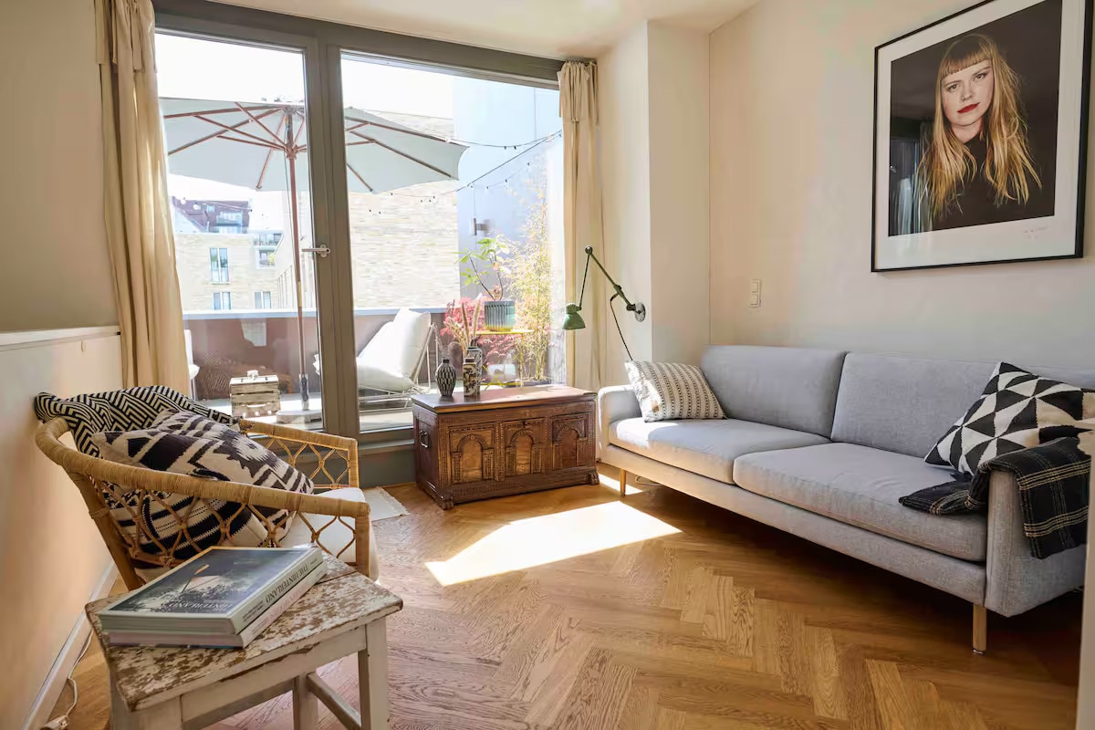 Das Apartment befindet sich in äußerst zentraler, gleichzeitig jedoch ruhiger Lage. Es verfügt über ein komfortables 140-cm-Bett sowie einen zusätzlichen Schlafsessel. Eine Kochnische ist ebenfalls vorhanden. Bei der Buchung steht euch das gesamte Apartment zur alleinigen Nutzung zur Verfügung – Privatsphäre ist somit gewährleistet. Die Einrichtung ist stilvoll und elegant gestaltet. Zudem gibt es einen kleinen, funktionalen Arbeitsplatz, der sich ideal für konzentriertes Arbeiten eignet.
