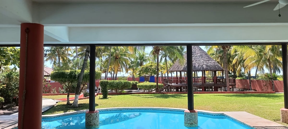 Con tu familia crea recuerdos inolvidables en esta casa en condominio seguro, con cocina moderna completamente equipada. Piscina privada grande con diferentes alturas para todas las edades, y múltiples sombrillas para tener sombra en la piscina. Acceso privado a la playa. Mesa de Ping-Pong, Juegos de niños y jardín de 500 metros para juegos al aire libre. Duerme cómodamente en 5 habitaciones con aire y TV, 16 camas en total. Parqueo para 4 carros dentro de la propiedad, más parqueos de visita.
