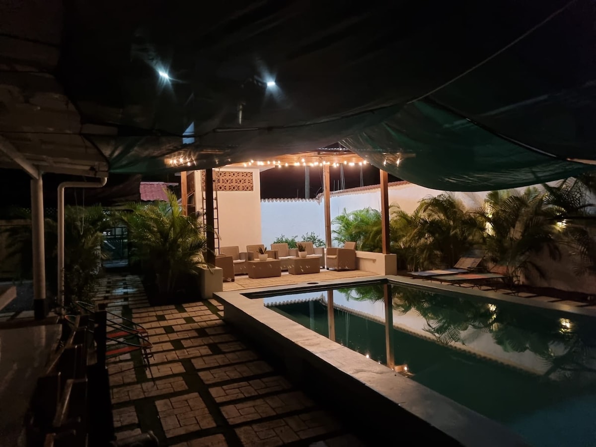 Relájate cómodos espacios remodelado totalmente, linda piscina y área verde casa totalmente equipada y amueblada para tengas un descanso y disfrutes al máximo tu estadía. Habitaciones (3) con aire acondicionado / cortinas blackout y baños privados. Área de juegos tenis de mesa y billar Área de rancho con tv con cable claro y sky Área de Sala con TV Sky / cable claro / Wifi/Churrasquera a gas áreas recreativas canchas volleyball/basketball y juegos para niños/ arenero