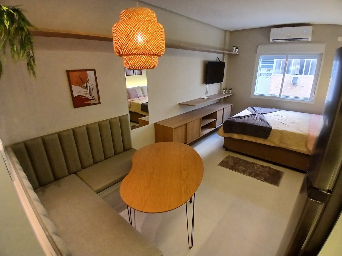 Super Host Brasil presents this comfortable, well-planned apartment, perfect for those seeking practicality, style, and proximity to the sea. Located in a prime area, you can reach the beach in just a 3-minute walk. Excellent location, very close to the beach, high-speed Wi-Fi, air conditioning in the bedroom and living room, modern decor, fully furnished and ready for your stay.
