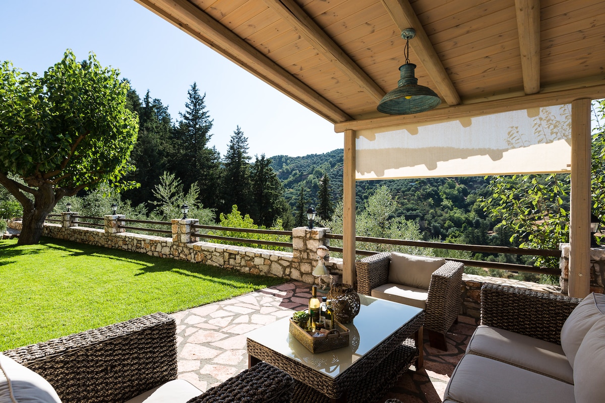 Vrisali传统石头别墅热水游泳池