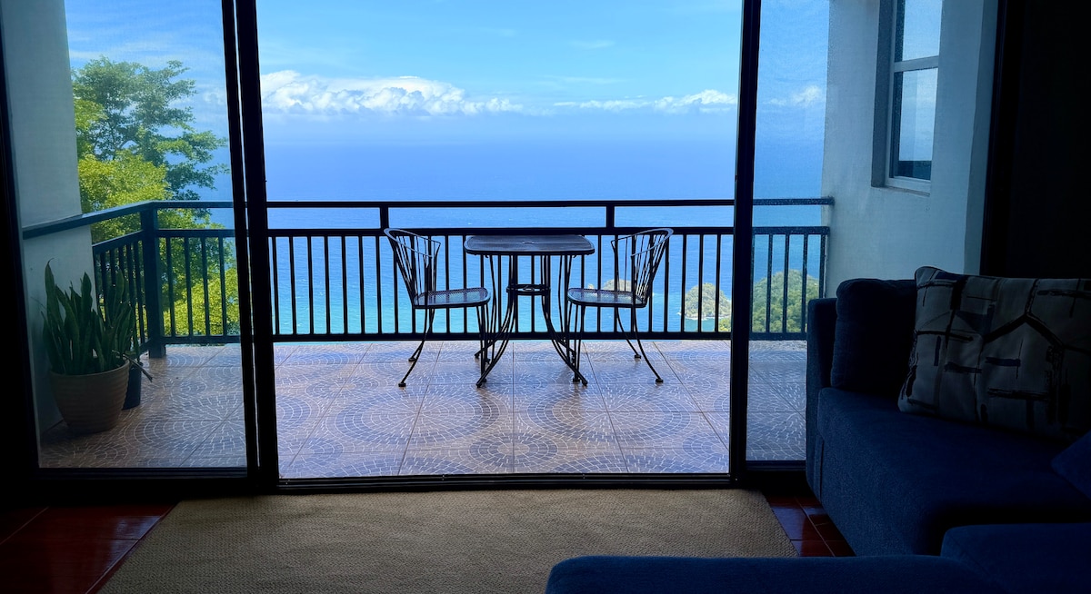 This wonderful unit is one of 3 that comprise the Flower Of Joy Wellness Villa. It's exceptionally charming, attractive and luxurious. Both bedrooms have en suite baths and great views. Many amenities including a 60" Smart TV, great cable package, high speed internet (350 Mb/s). The plunge pool area is exceptional. Kitchen fully outfitted, air fryer. You are surrounded by a tropical paradise garden which has more than 90 bird species and 40 types of fruit trees. Convenience and Nature.