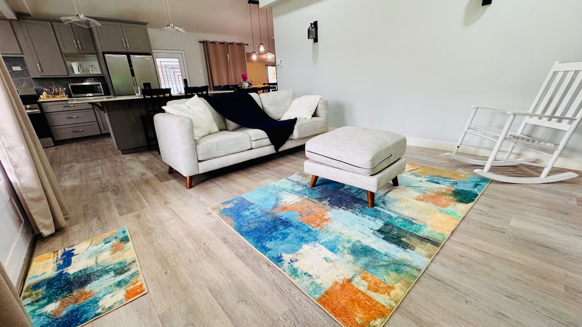 Wake up to birdsong, enjoy your coffee, and unwind in a calm environment — yet still close to everything you need. This fully furnished 3-bedroom, 2-bathroom bungalow offers the perfect blend of comfort and convenience — ideal for families, business travelers, or small groups seeking a relaxing stay. 💪 Bonus - Stay on track with your wellness routine! Enjoy access to a small private gym. 👨👩👦👦🧒🏽👶🏻Families - Request a travel car seat, park and play, and toys for the little ones.