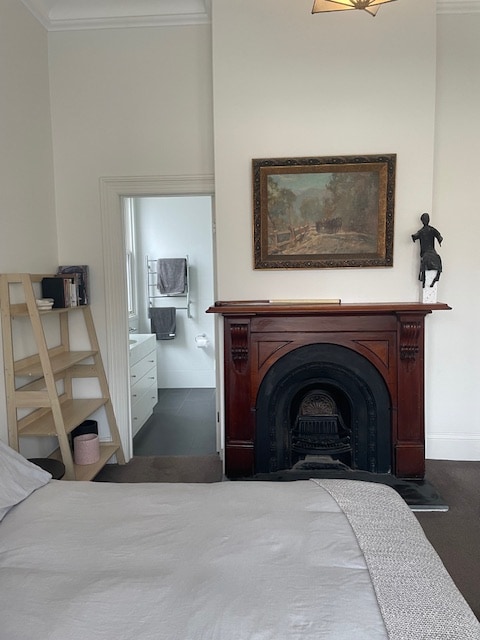 An enchanting self-contained suite with tall timber raked ceiling, and rustic brick and stonework complimented by an alluring woodfire heater. Relax in the double spa bath in the ensuite. The suite has magnificent views into the nearby garden with Azaleas, Birch and Oak trees in sight. The suite is complimented by an outdoor deck with an outdoor setting for your exclusive use.