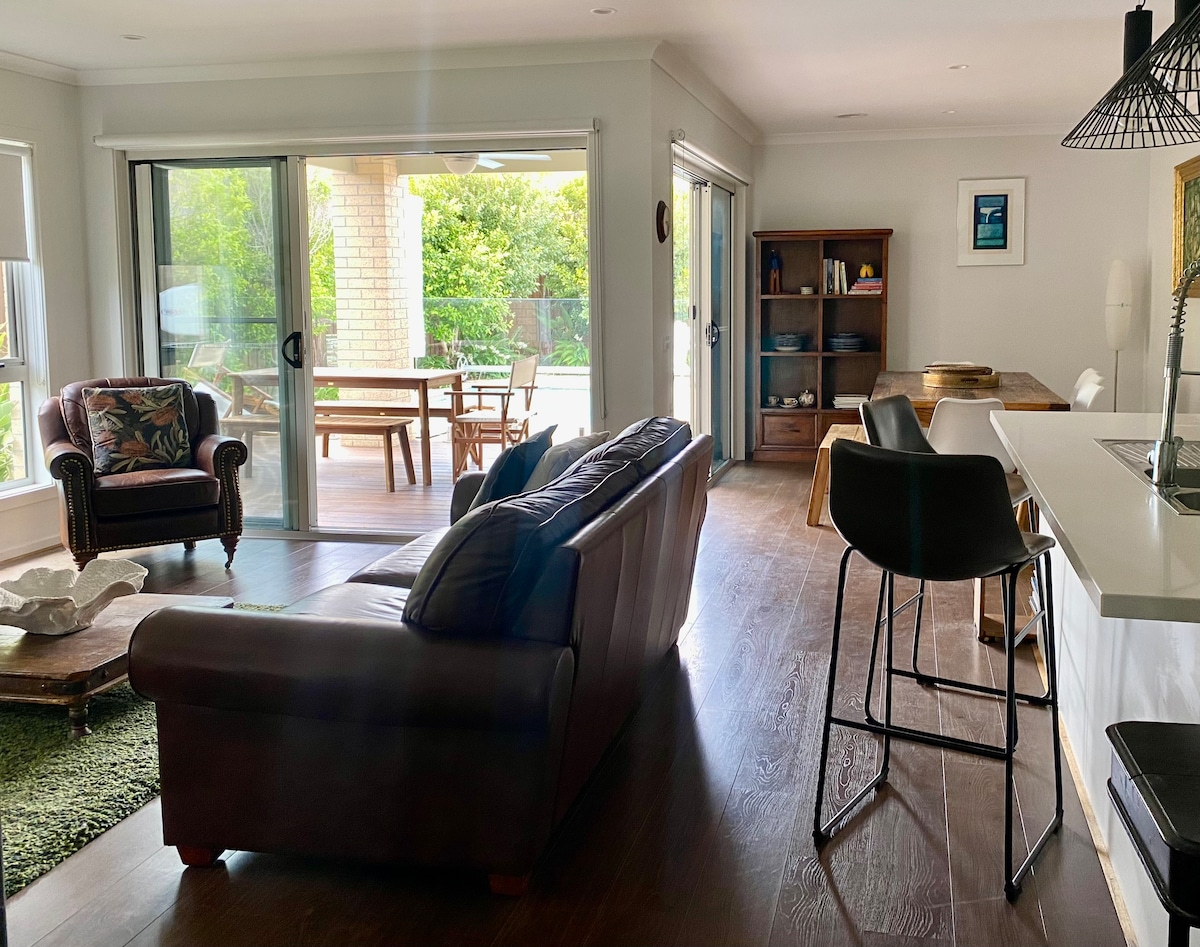 Our beautiful villa Ella's Rest is nestled on a 7 acre property in a quiet pocket of Torquay. Recently completed with a local architect our eco-friendly 2 bedroom home is truly unique and finished to the highest quality. The natural aesthetic creates a space that captures light and views from every room making it seamless from outside to in. A sheltered deck overlooking the dam and a north facing courtyard with outdoor dining, shower and firepit makes it truly hard to ever leave.