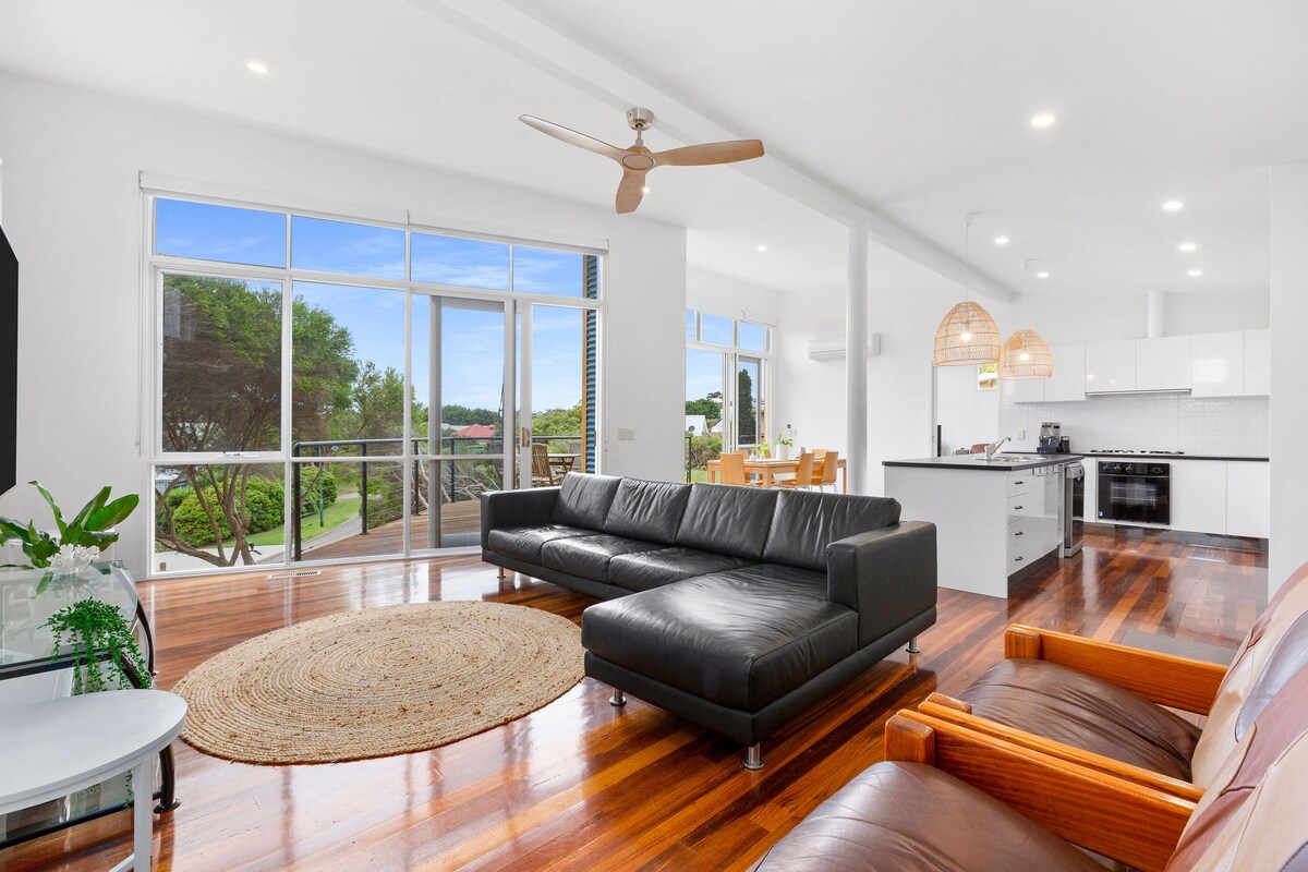 Guests say: “At Forana Holiday House, You feel instantly Welcome and at home!” The natural light-filled open spaces, and fully equipped kitchen impress. TV & play room w. games, books & toys & a NEW dedicated office space. Suits both long & short-term stays. A modern layout caters for 1 - 9 guests. Located in a sought after quiet area, next to park & play. 5 mins walk to bay beach, w Cowes a short drive away. Forana are a popular choice for both Aust. & Int. guests. - Children & dogs Welcome!