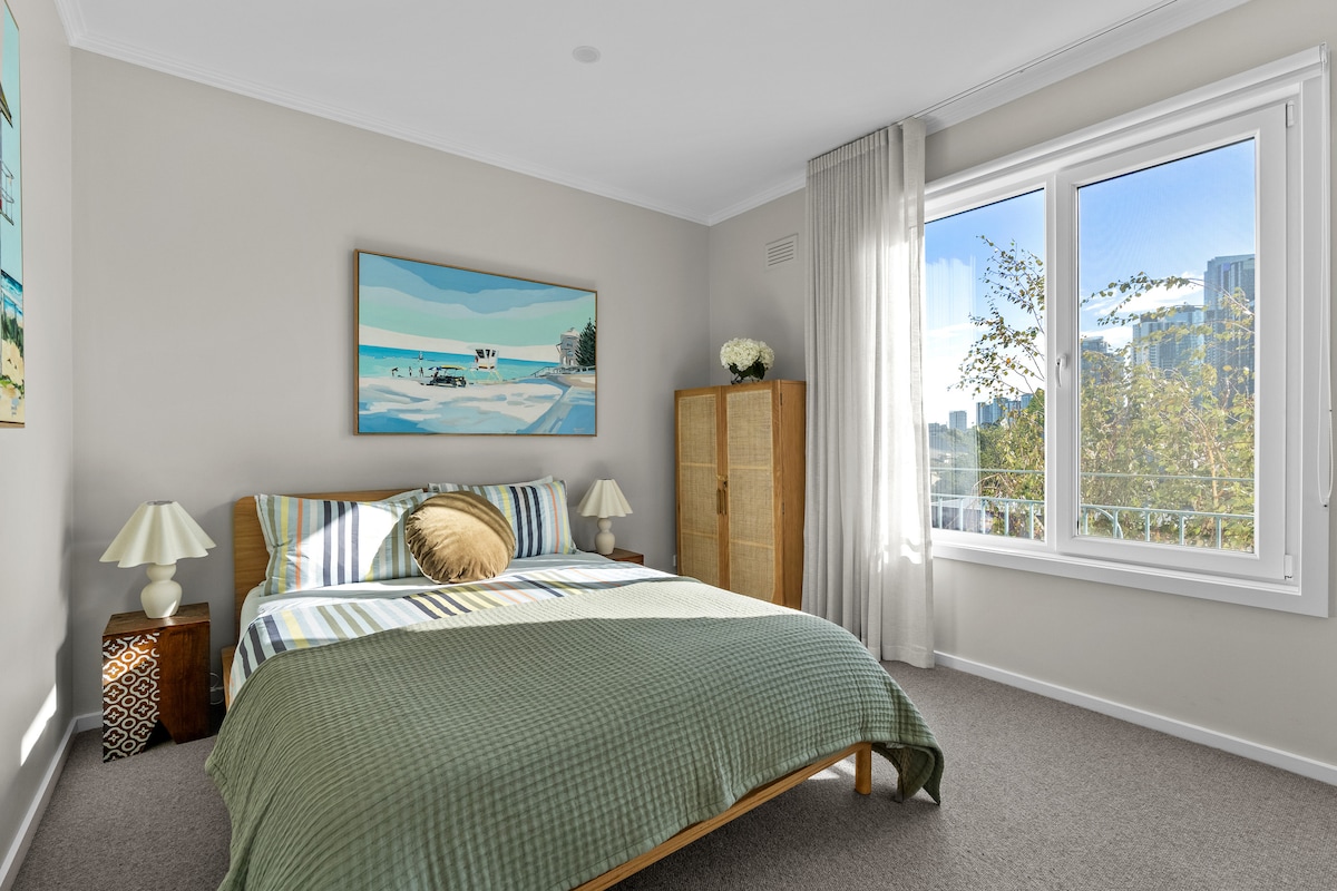 Nestled quietly in between Albert Park and St Kilda Road. This one bedroom apartment has all the comforts of home and would suit a couple, solo traveller or a corporate stay. Located on level 9 in a modern high rise with access to great amenities including an indoor pool and gym. Well located with short walk to St Kilda Road trams giving access to the city, Chapel St, and St Kilda Beach. Both Albert Park and Fawkner Park are a close stroll and The Alfred Hospital is about 5 minutes walk.