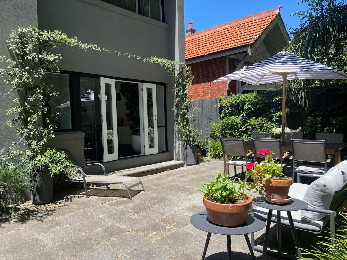 Enjoy easy access to everything from this perfectly located 1 bedroom apartment. - 300m away from Tram that will take you into Melbourne CBD - directly across from the St Kilda Botanical Gardens - 10 minutes walk to Ackland Street Shopping Precinct - 1KM to St Kilda Beach Pet friendly with enclosed courtyard North Facing 1 bedroom Apartment with stacker sliding doors to oversized courtyard with outdoor dining, grass area, clothes line and fire pit.
