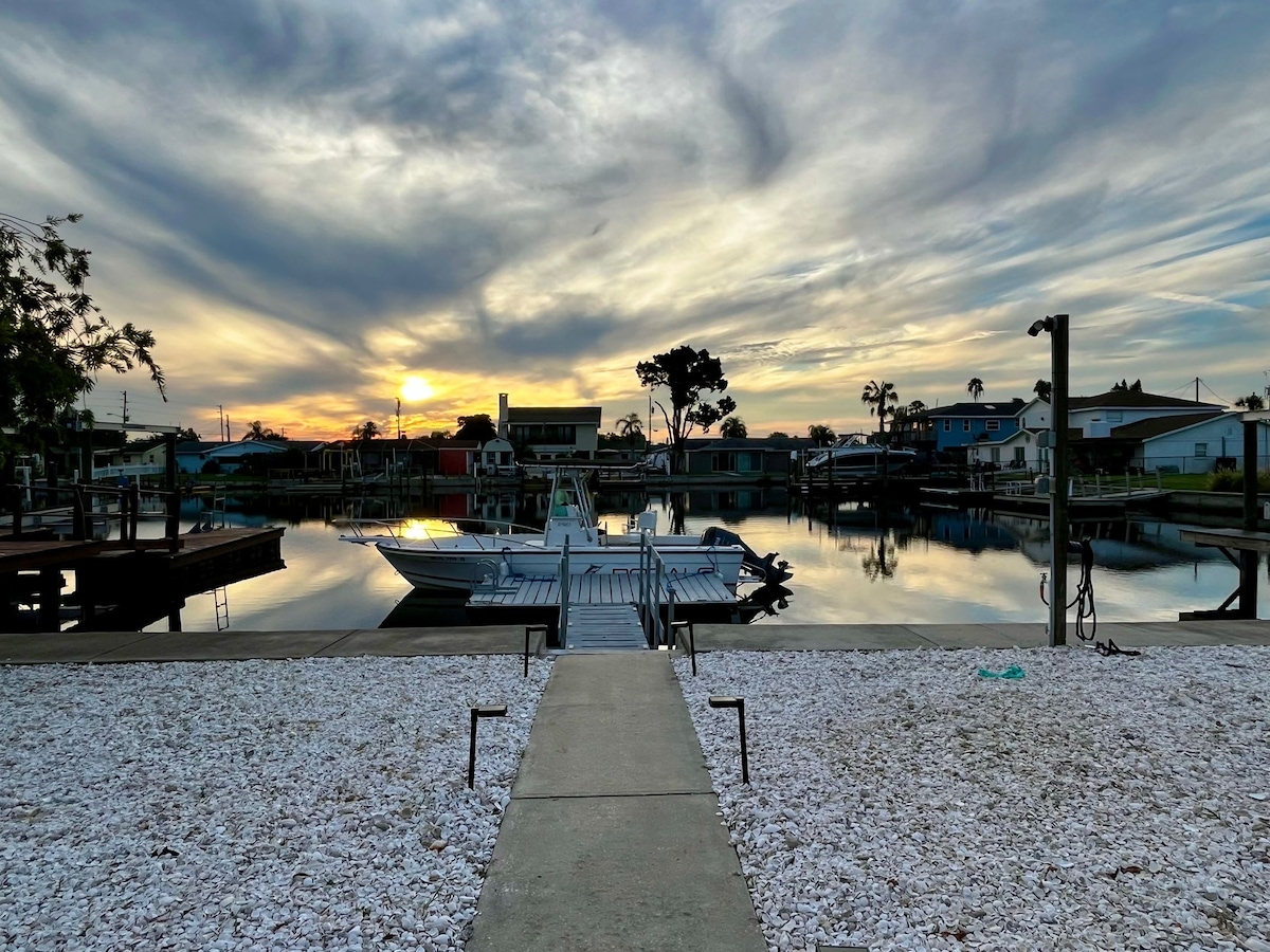 Escape to The Pier Cottage, a stunning waterfront house in New Port Richey, Florida! This beautiful property offers breathtaking water views and a serene atmosphere, perfect for a relaxing getaway. With three spacious bedrooms and 3.5 bathrooms, there's plenty of room for families or groups. Enjoy modern amenities like a fully equipped kitchen, air conditioning, and Wi-Fi. Outdoor features include a BBQ grill, a complimentary pier to park your boat and kayak/jet ski ramp, fire pit, and a patio f