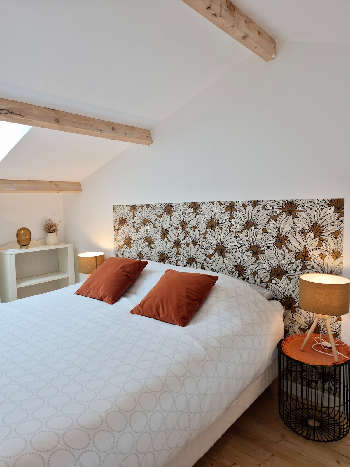 Au sein d'une exploitation maraîchère bio diversifiée. Gîte pouvant accueillir 4 personnes (dont 2 en mezzanine). Douche, WC et kitchenette privatifs. Draps et serviettes de bain sont fournis et compris dans le prix. Vélos à disposition, gratuitement. Internet : fibre Les entrées se font à partir de 16h, sauf le vendredi (17h).