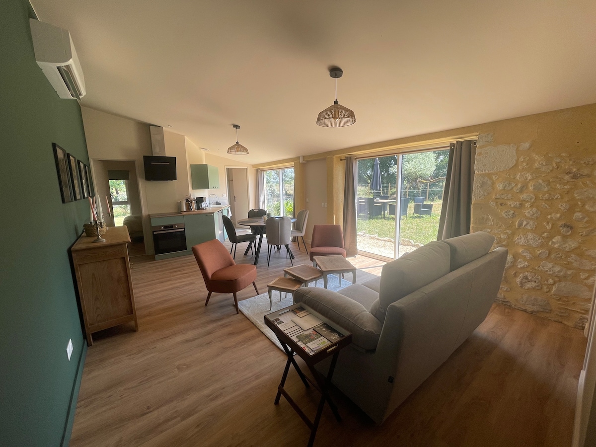 Situé en extrémité d'une longère en pierre typique de l'entre deux mers, sans vis à vis, cette maison de campagne vous offre un panorama sur les prairies entourant le petit hameau de trois maisons. Le logement est un ancien gîte rural fraîchement remis au goût du jour pour la location Airbnb, avec l'ajout d'une petite piscine creusée. Vous serez charmé par le calme et la sérénité de ce lieu tout à fait exceptionnel. Déconnectez vous pour mieux vous retrouvez.