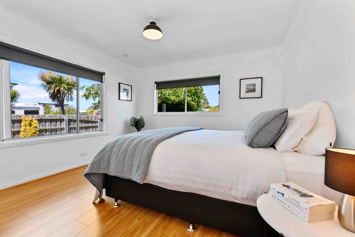 Our light-filled cottage is situated in a quiet street a short stroll to beaches, and local amenities. It is a 15 minute drive to the Devonport airport and a 5 minute drive to the local shopping precinct. Our peaceful cottage has two large bedrooms. Bedroom 1 contains a king size bed which can also be configured as twin singles upon request. Bedroom 2 contains a queen size bed. Detached from the house is a bungalow which also contains a queen size bed and has its own sitting area and toilet.