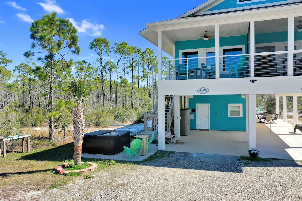 Best location in Port St. Joe! - Spikeball & cornhole - Yoga mat - Beach towels and chairs - Stocked kitchen w/ drip and k-cup machines - 2 Screened porches (200 sq ft) - Minutes to multiple beach access points - Central to cape san blas, mexico beach, and downtown PSJ - Upgraded kitchen - Smart TVs - Upstairs: 2 King Beds with en suite bathrooms - Downstairs: half bath, 1 sectional and 2 twin air mattresses for extra sleeping We prioritize your 5-star experience over anything else! :)