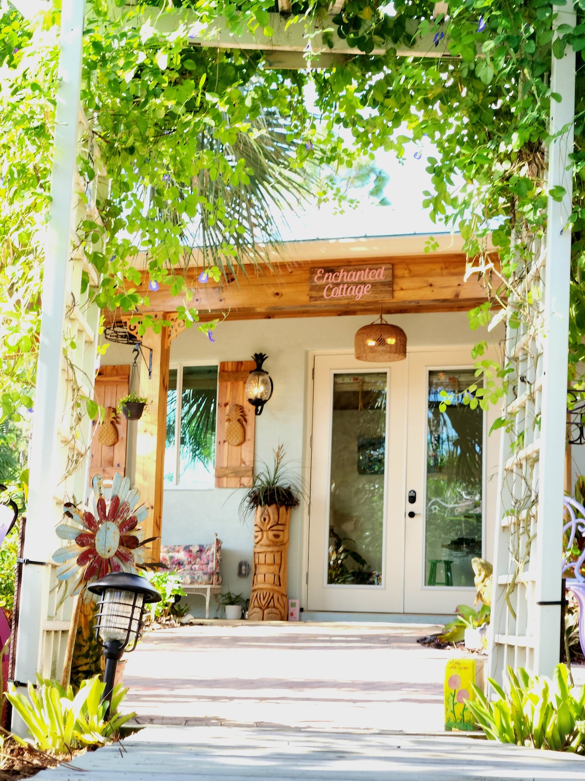 Experience The Enchanted Cottage, a serene 1950s Old Florida-style retreat nestled within a relaxing lush tropical botanical garden Whether you're sipping your morning coffee in one of its charming outdoor nooks or unwinding with a glass of wine under the stars, every moment here promises to be unforgettable. Experience the magic of Port Saint Lucie like never before at The Enchanted Cottage. Visit our gift shop and our plant nursery. The shop is filled with unique handmade treasures and plants