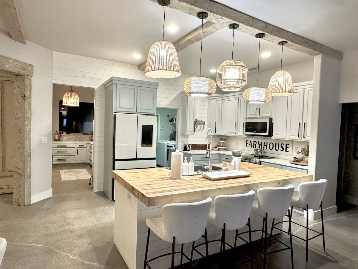 Escape to The Palm House! Featuring a brand new salt water pool, fountain, and outdoor kitchen oasis! Recently completed pool area is a tropical dream! Located just 15 minutes from the beach. Open concept great room with a chef’s kitchen and tropical views in every direction. Enjoy a true indoor outdoor South Florida experience with 20 foot sliders that open to the patio. Custom and modern touches in every room! You’ll love the lux built in bunkbeds! Stylish bedrooms with room to sleep 8.