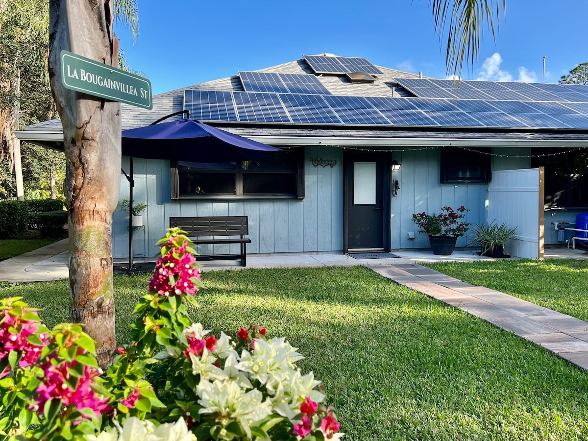 Most unique place to be! The House of the Sun! Casa del Sol! A beautiful getaway blocks from the Atlantic Ocean. Your Beach is on Beautiful Jupiter Island only minutes walking or biking. This sunny getaway is nestled back on the largest lot in Historic Downtown Hobe Sound. The beachy decor reminds you that you are truly in your own beach house, paradise! Lounge in hammock in the yard, use of bicycles, wifi & surround sound w/ premium cable. Plenty of fun games indoors and outdoors.