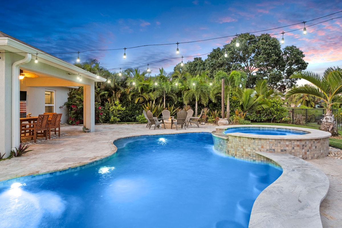 棕榈天堂度假屋|泳池、热水浴缸和篝火