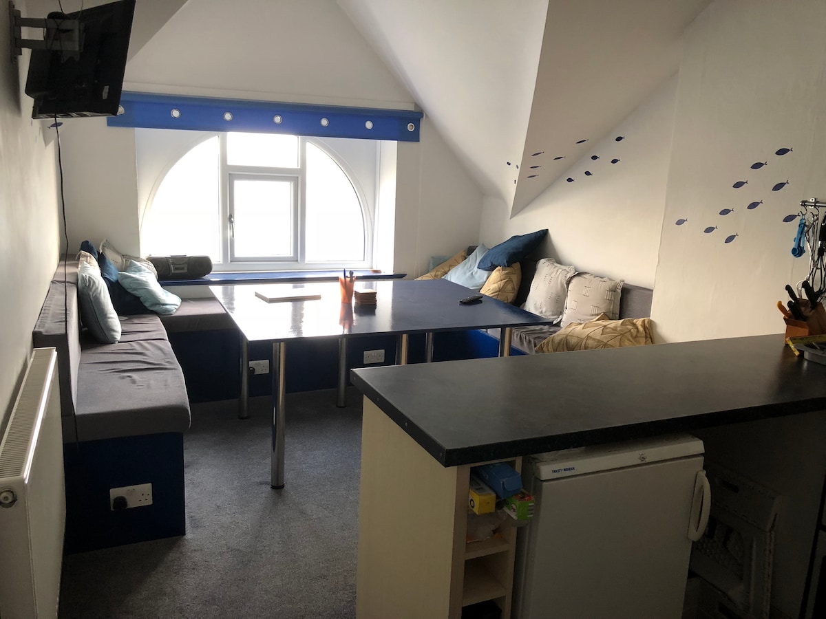 Isle of Man Registered Accom number 640945 Our place is close to the beach with great views and walks round the coast. You’ll love the comfy full sized beds. Our place is good for couples, solo adventurers, families (with kids) and for big groups (up to 14!). The whole flat can be hired out for a large group (look for our other listings). The Tower room sleeps up to 4 guests. To find the property, head for the corner of Gellings Avenue and Bay View Road. What3words irregular.witty.timings