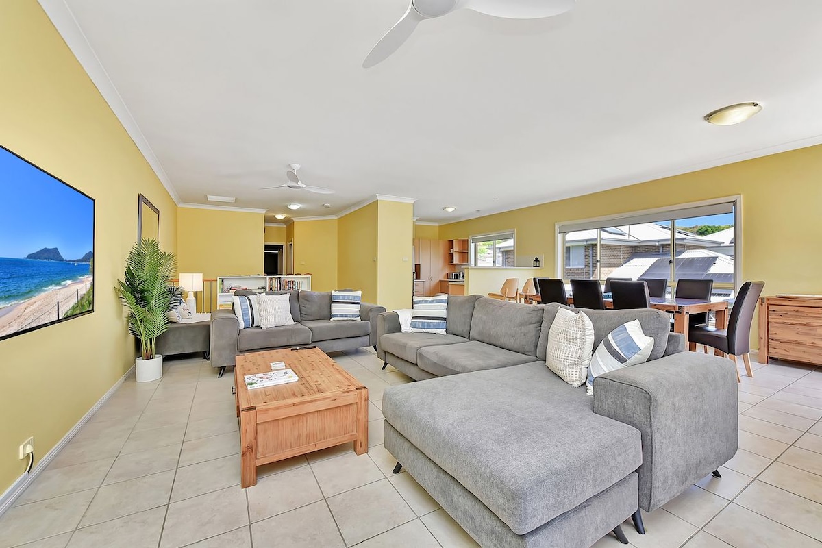 Fifty Five on Sunrise Beach at Soldiers Point On the shores of Nelson Bay only 2.5hr drive from Sydney and only 30mins to Newcastle Airport makes for an easy short stay unless you're lucky enough to linger longer Enjoy sunrises as you wake with a coffee or yoga on the deck as the sun rises on your doorstep Once you've arrived at Fifty Five there’s really no need to leave! PLEASE NOTE We require all adult guests to be Airbnb verified prior to checkin please