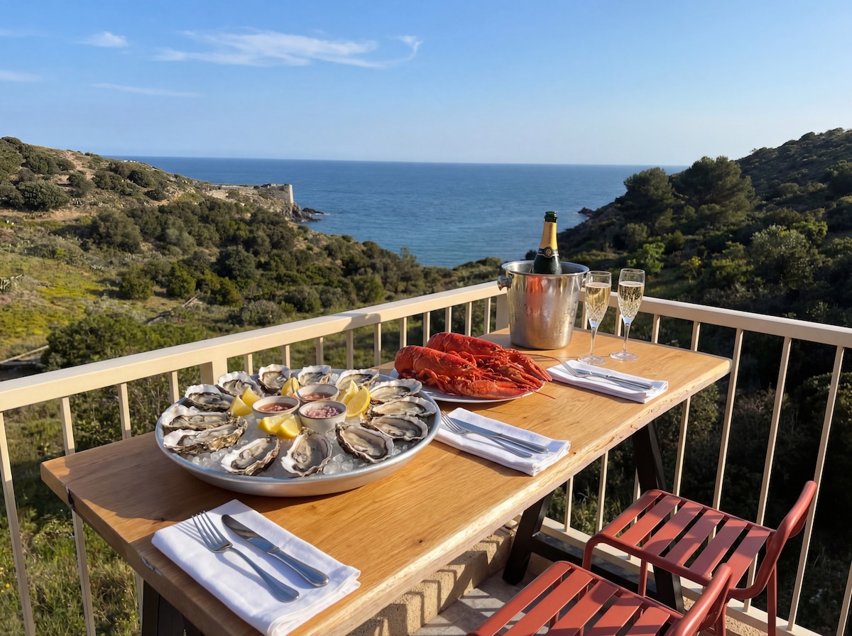 New Beautiful appartement in the heart town of Port Vendres, it's the perfect place for your holidays and to enjoy the sun, and the central sea view. Next to the Harbor, restaurants, bars and shop (2min). Beach and Hiking trails are near from flat.
