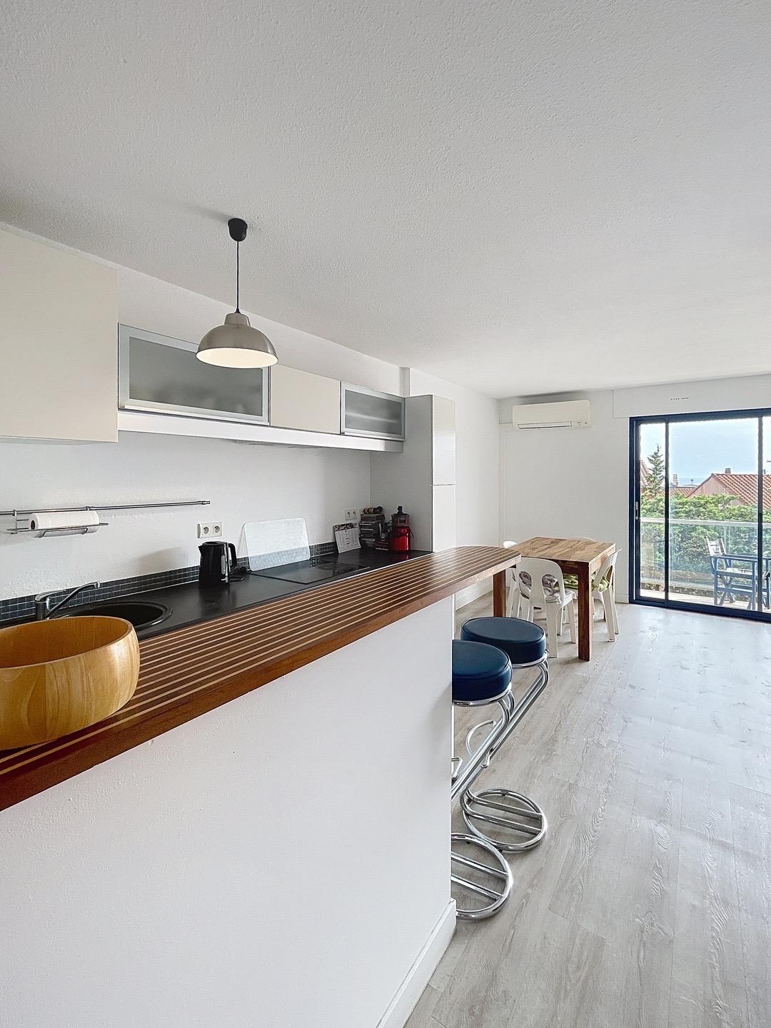 A 2 km de Collioure dans une maison comprenant deux logements bel appartement de 47 m2 ensoleillé entièrement rénové en mars 2021 avec terrasse vue mer, situé dans un quartier calme à 150 m d'une crique et proche des commerces, garage privatif, wifi, climatisation et cuisine toute équipée.