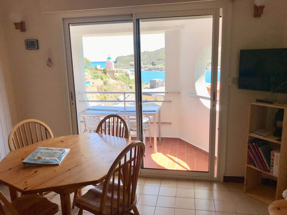 LES PIEDS DANS L’EAU ! Beau T2 situé dans un petit immeuble au calme d’une capacité de 2 à 3 personnes, refait entièrement à neuf et très confortable avec vue panoramique sur mer. Parking gratuit à proximité. Il y a 3 plages à proximité de l'appartement à 5 mn à pieds, nichées dans de petites criques. L'une en galets et les 2 autres en sable (chaussures conseillées) Vous aurez la possibilité d'accéder à beaucoup d'autres plages sur Port-Vendres en voitures ou lors de randonnées pédestres.